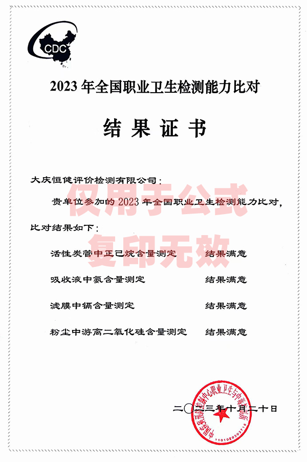 2023年全國(guó)職業(yè)衛(wèi)生檢測(cè)能力比對(duì)結(jié)果證書(shū)