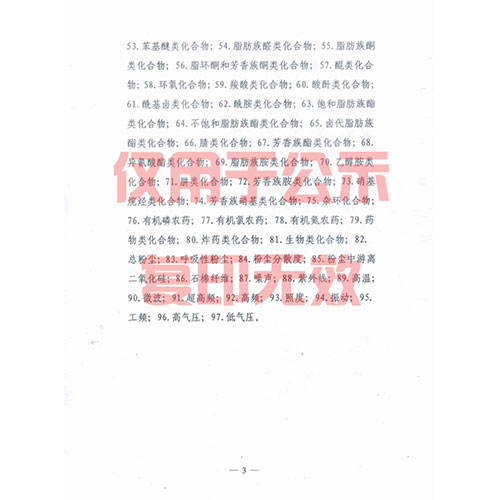 生活飲用水水質(zhì)檢驗(yàn)項(xiàng)目為61項(xiàng);水和廢水(含降水)檢驗(yàn)檢測(cè)項(xiàng)目為75項(xiàng);水質(zhì)生物檢測(cè)項(xiàng)目為4項(xiàng);環(huán)境空氣和廢氣檢驗(yàn)檢測(cè)項(xiàng)目為43項(xiàng);土壤檢驗(yàn)檢測(cè)項(xiàng)目為27項(xiàng);固體廢物檢驗(yàn)檢測(cè)項(xiàng)目為3項(xiàng);環(huán)境噪聲檢測(cè)項(xiàng)目為6項(xiàng);電離輻射檢測(cè)項(xiàng)目為1項(xiàng);電磁輻射為2薦;油氣回收檢測(cè)項(xiàng)目為4項(xiàng)。