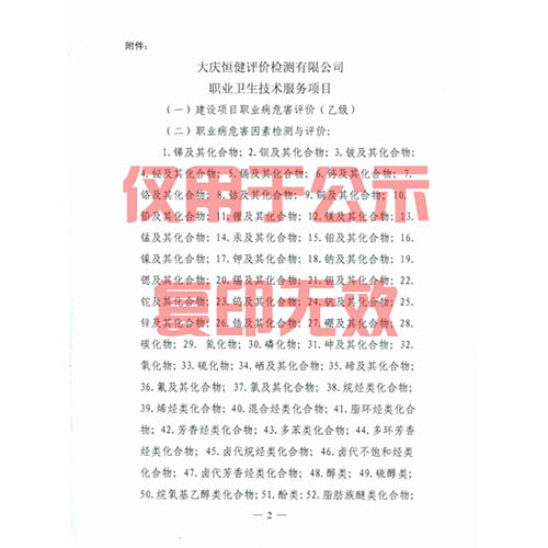 公司2007年9月**獲得黑龍江省衛(wèi)生廳職業(yè)衛(wèi)生技術(shù)服務(wù)機(jī)構(gòu)乙級(jí)資質(zhì)證書(shū)(黑衛(wèi)職認(rèn)字[2007]第093號(hào));2012年9月10日獲得黑龍江省衛(wèi)生廳公共場(chǎng)所技術(shù)服務(wù)機(jī)構(gòu)**技術(shù)能力考核合格批復(fù)文件,成為全省首家合法開(kāi)展公共場(chǎng)所檢測(cè)的技術(shù)服務(wù)機(jī)構(gòu)。2015年6月通過(guò)黑龍江省安全生產(chǎn)監(jiān)督管理局續(xù)展審查,資質(zhì)證號(hào)為黑安職技字(2015)第B-0011號(hào);2018年5月月通過(guò)黑龍江省安全生產(chǎn)監(jiān)督管理局續(xù)展審查,新資質(zhì)證號(hào)為(黑)安職技字(2018)第B-0011號(hào),有效期*2021年6月4日。職業(yè)衛(wèi)生檢測(cè)、評(píng)價(jià)的業(yè)務(wù)范圍包涵石油和天然氣開(kāi)采業(yè);金屬、非金屬礦采選業(yè)和工程建筑業(yè);冶金、建材;化工、石化及醫(yī)藥;輕工、紡織、煙草加工制造業(yè);機(jī)械、設(shè)備、電器制造業(yè);電力、燃?xì)饧八纳a(chǎn)的供應(yīng)業(yè);運(yùn)輸、倉(cāng)儲(chǔ)、科研、農(nóng)林、公共服務(wù)業(yè)等八大行業(yè)100個(gè)項(xiàng)目。是省內(nèi)服務(wù)范圍較為**的職業(yè)衛(wèi)生技術(shù)服務(wù)機(jī)構(gòu)之一。